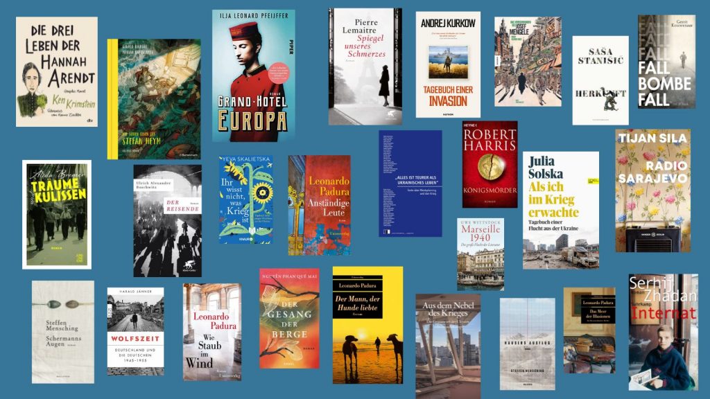 Viele Romane und Sachbücher, Tagebücher und Essays, die ich in den letzten Jahren gelesen habe, behandeln oder berühren das Thema Flucht. Das Bild zeigt eine nur Auswahl an Titeln.