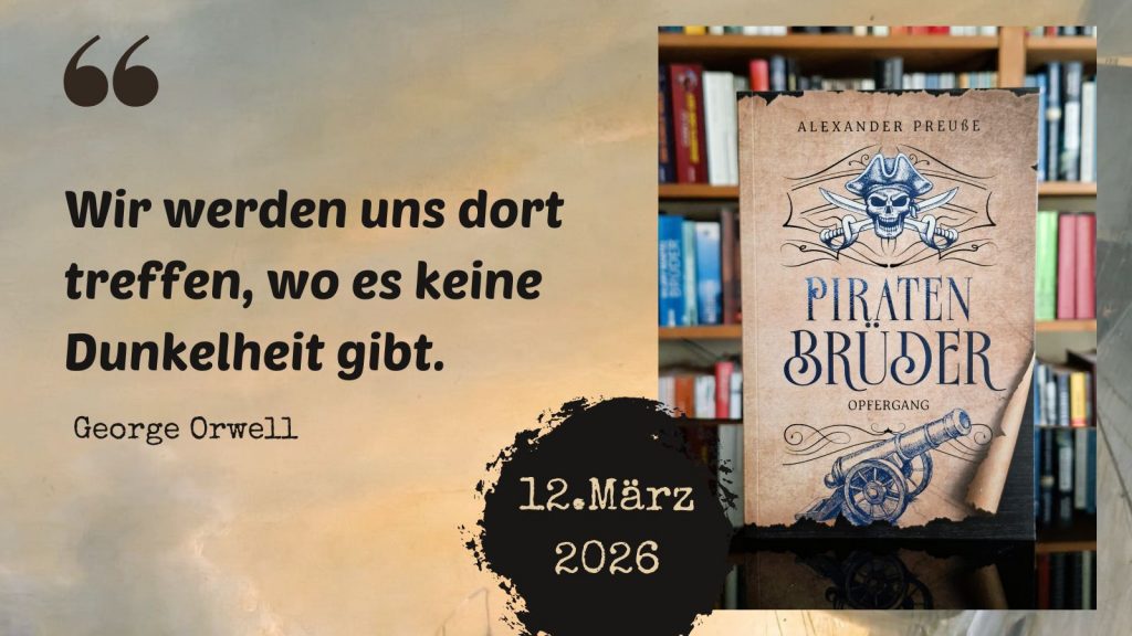 Noch ist die Ziellinie nicht erreicht. Als letzten Schritt vor der Veröffentlichung lese ich das ganze Buch noch einmal laut vor und eliminiere die letzten Fehler. Durch das besondere Format fällt doch noch einiges auf, was korrigiert werden muss. Trotzdem ist absehbar, dass Opfergang viel früher erscheinen kann, als geplant. So habe ich den Termin der Vorbestellung auf den 12. März 2026 vorverlegt.